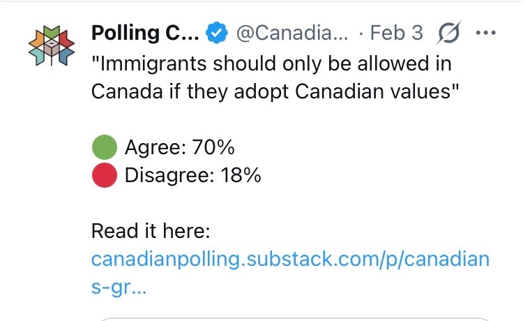 Super majority of Canadians say immigrants should only be allowed in if they adopt Canadian values